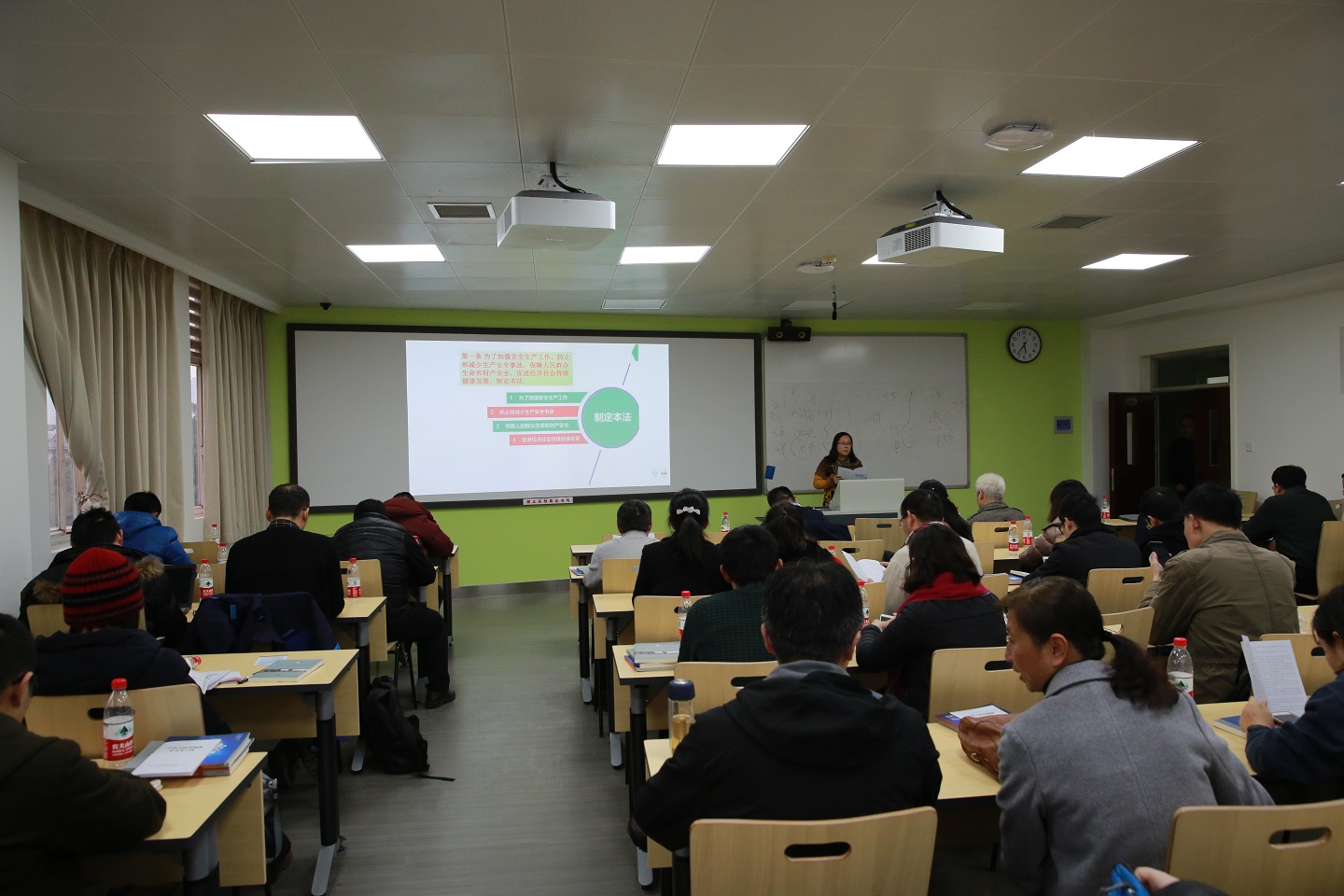 2017年12月21日下午5点,太阳网集团tcy8722在基础教学楼A座504教室召开了全院学习安全生产法专题会,公司全体教职工成员参加了本次会议。会议由公司经理冯国英教授主持。
