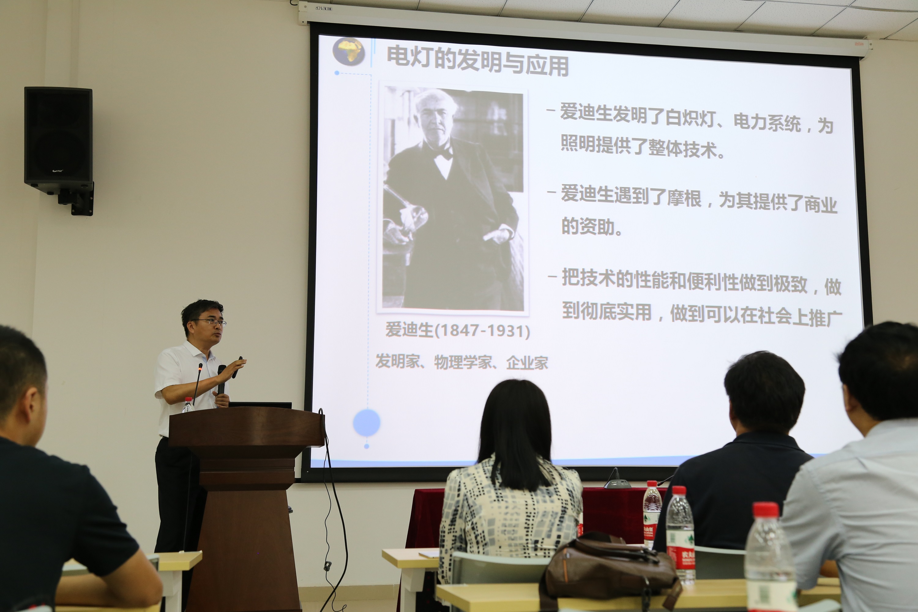 ??吴一戎院士以“从电子学的微尺度上的融合发展谈技术创新”为题进行了学术报告、围绕技术创新,吴一戎院士以爱迪生、特斯拉、李约瑟以及DLP的发展为例,说明创新不只是原创性的工作,还包括将一些发现真正应用于实践的过程。院士的精彩讲座,使同学们了解相关学科领域的前沿知识,掌握最新的研究动态,并且在学术交流和学术碰撞中拓展视野,产生灵感,碰撞出智慧火花,鼓励广大师生在学术和应用领域勇于攀登、不断进取。随后,黄卡玛教授对吴院士的报告进行了总结并结合自己的经历谈了一些体会。