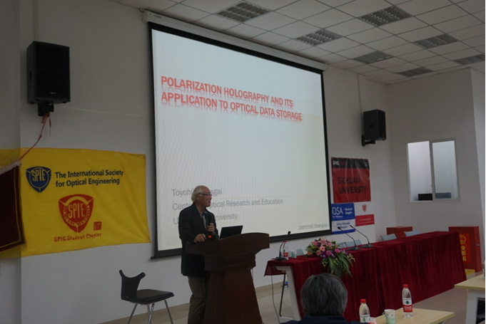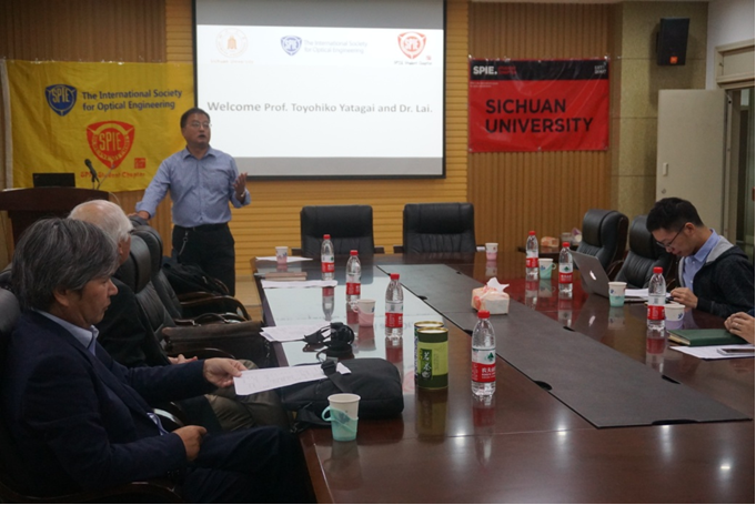 当晚,Toyohiko Yatagai教授在西五教附101教室给全院师生做精彩学术报告,活动由张启灿教授主持,公司苏显渝教授、王琼华教授、刘元坤副教授、王君副教授以及李玮副教授等到会出席,聆听了Yatagai教授的学术报告。