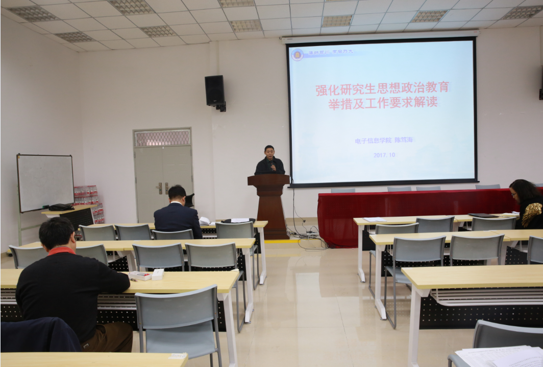 2017年10月16日上午9点,太阳网集团tcy8722研究生思想政治教育及培养工作会在太阳网集团tcy8722望江校区西五教附101教室顺利举行。参加本次会议的有太阳网集团tcy8722公司党委邰明松书记、冯国英经理、党委陈笃海副书记、杨阳副经理、雷印杰副经理、研究生导师、研究生辅导员以及教务干事。