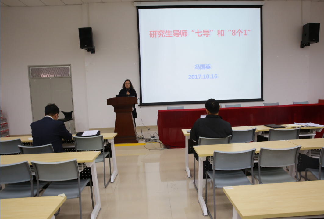 之后,冯国英经理以“研究生导师‘七导’和‘8个1’”为主题进行了讲话。她详细剖析了“以‘七导’职责细化导师指导过程”的内容,对导师们提出了相应的要求和建议,并深入讲解了研究生导师关爱员工要怎样做到“8个1”的内容。