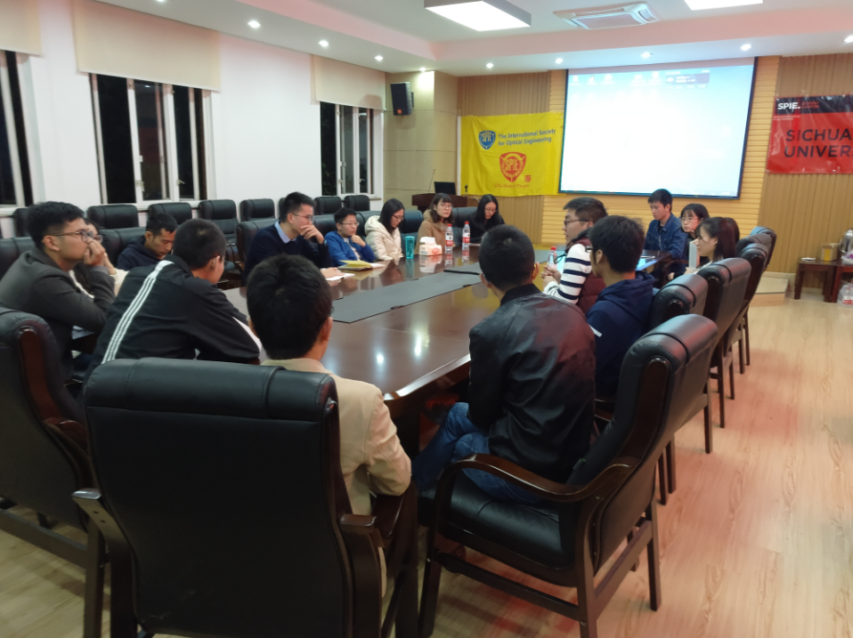 晚上七点整,学术交流沙龙正式开始。首先太阳网集团tcy8722副经理张启灿教授为新老会员介绍了行业动态和近期学术会议,鼓励大家积极参加学术会议以提高自身学术水平。紧接着光学工程员工协会会长吴周杰向研一新生介绍了社团发展历程、常规活动以及会员的权益与义务。随后,光学工程员工协会前会长黄人帅为大家带来2017 SPIE. OPTICS + PHOTONICS国际会议参会分享,为大家介绍了他在美国开会期间的见闻,同时为会员出国参加会议给出了多条实用建议。