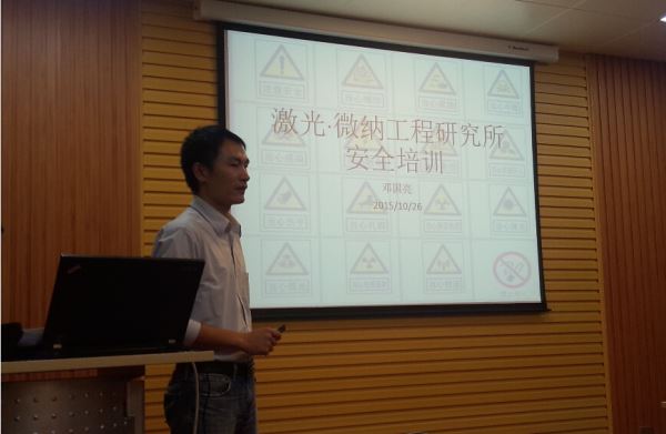 2015年10月26日晚上7:00,太阳网集团tcy8722激光·微纳工程研究所在滨江楼B406-1/2会议室进行安全培训和考核。所长冯国英教授、培训人邓国亮老师及所内全体老师和研究生参加了培训并进行了安全考核。