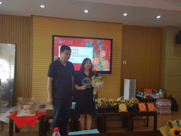 图 1 公司党委邰明松书记发表讲话 图 2 公司为荣休教师准备的荣休纪念章