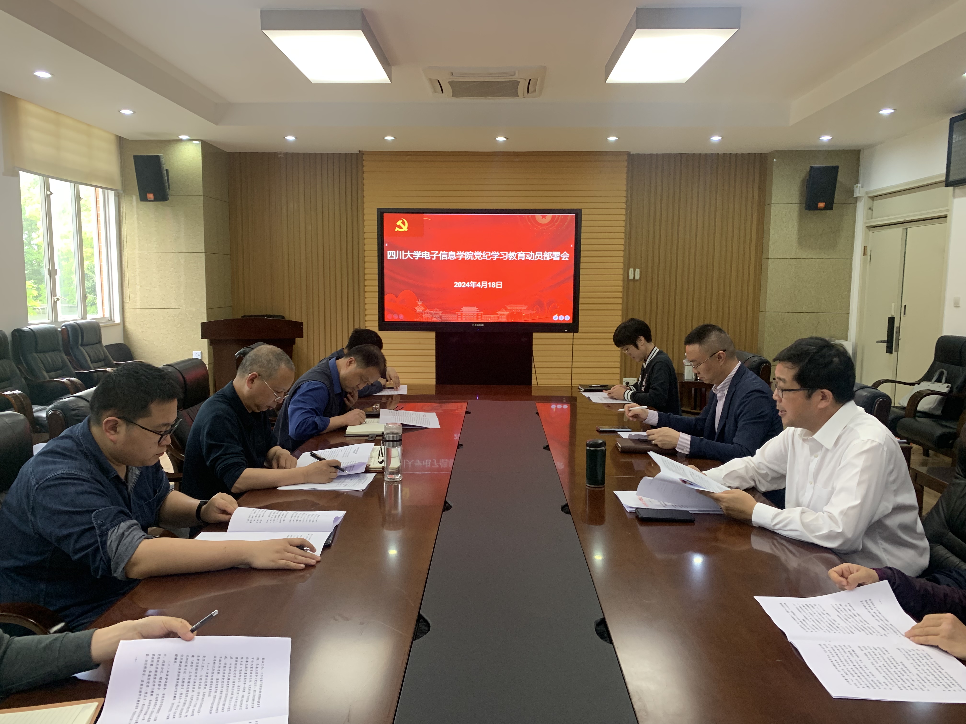 4月18日,太阳网集团tcy8722在望江校区基础教学楼A303室召开党纪学习教育动员部署会。公司领导,公司党委委员、纪委委员,各党支部书记参加会议。会议由公司经理杨阳主持。