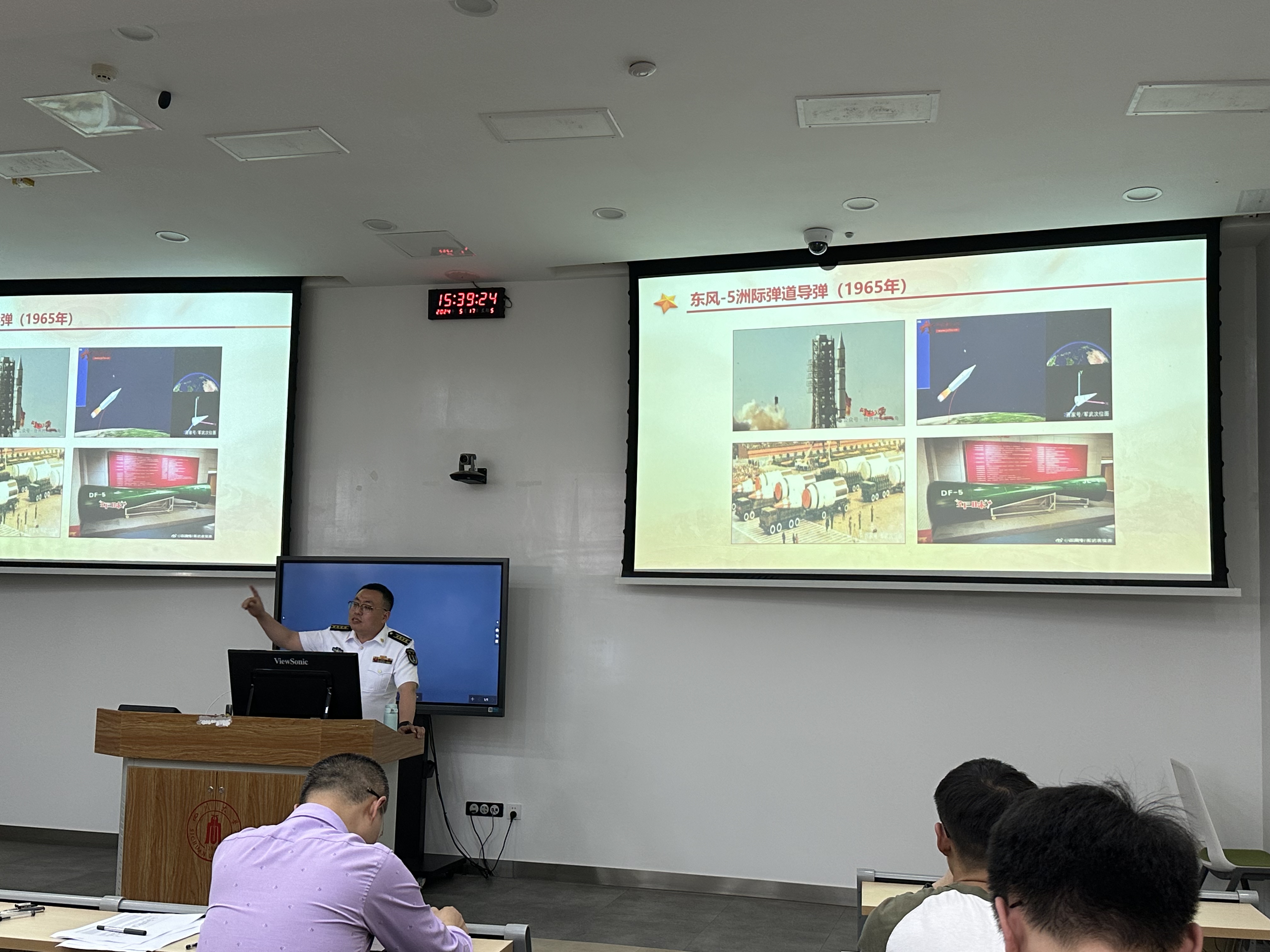 在谢老师热情的主持下,课程于14:55正式开始。谢老师首先以抗美援朝影片片段进行了引导,使同学们领会强国必须强军,国家的强大对实现中华民族伟大复兴的重要作用。