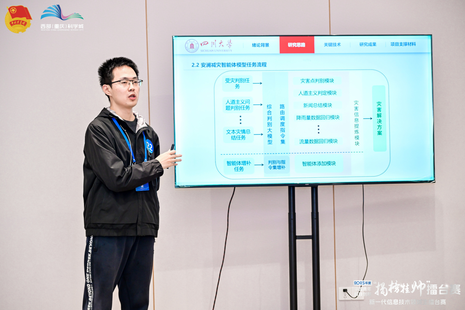 10月26日至28日,由共青团中央、中国科协、教育部、中国社会科公司、全国学联共同主办的第十九届“挑战杯”竞赛2025年度中国青年科技创新“揭榜挂帅”擂台赛“—“新一代信息技术”主擂台赛在重庆举行,吸引了全国378所高校1250余支团队2万余名老员工及青年科技人才参与,榜题数量、参赛规模、作品数量均位居全国各领域擂台赛第二。