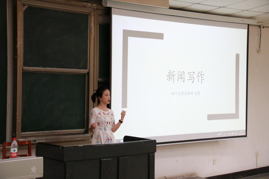 | 校宣传部龙莉老师讲授新闻写作知识 |