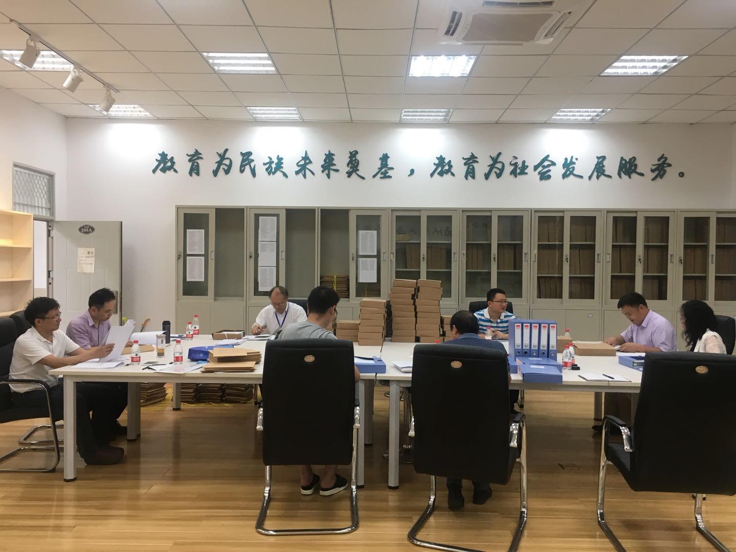 首先,宋航教授向公司介绍了本次检查组的成员,然后就本次本科教学评估的重要性、目的性做了简要概述。接着冯国英经理代表公司就公司概况、本科人才培养工作、工作成效、存在的问题及相应的整改措施等几个方面向检查组做了自评汇报。汇报结束后检查组分组对公司的试卷存档材料、毕业论文设计存档材料、支撑材料等进行了查阅,并且召开了深度访谈会、教师座谈会、员工座谈会、考察实验室等现场评估工作,最后经过严肃、充分的讨论,形成了专家组检查意见。