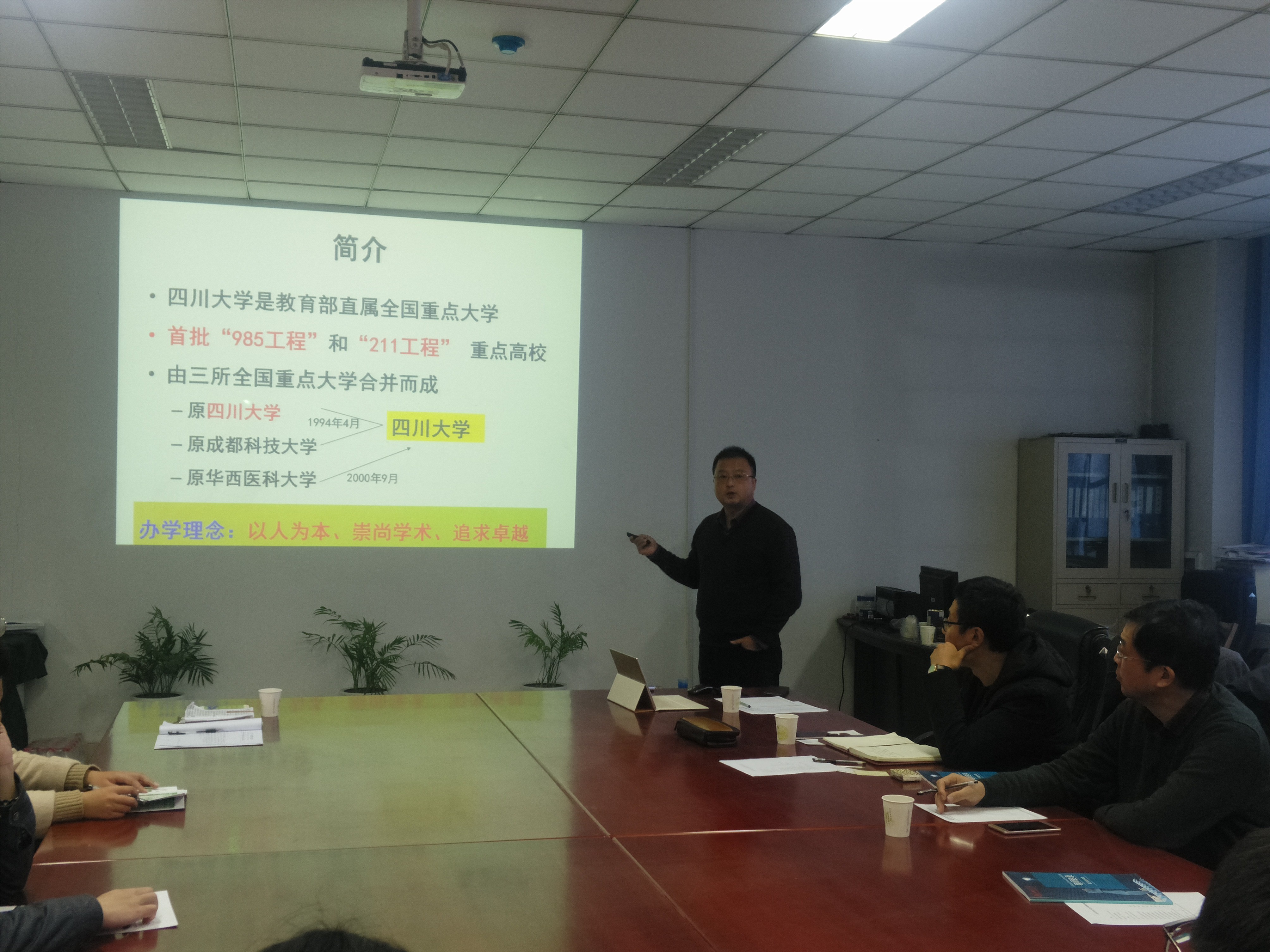 2018年11月22日公司邰明松书记、张启灿副经理、杨晓庆教授和李军华老师一行四人赴郑州大学信息工程公司开展党建工作、公司产品调研交流和研究生招生宣传工作顺利完成。22日上午九点钟,在郑大信息工程公司李海涛老师的陪同下,公司一行人先参观了该公司的本科生创新实验室和科技竞赛成果展。然后与该公司党委书记胡亚杰一同参观了党员活动室、工会之家,而后与郑大信息功臣公司党委胡亚杰书记、张国强副书记、叶阳东副经理、团委李海涛书记、辅导员王成老师一起进行了关于员工党建、公司产品、公司团队建设、工会建设等方面进行了深入的探讨。会上郑大信息工程公司胡亚杰书记对我们一行人的到来表示热烈的欢迎。公司邰明松书记对郑大信息工程公司的接洽表示感谢。双方就公司发展过程中的经验做了友好的交流。同时双方都表示希望能够学习对方的成功经验,提升自己的管理能力,为公司以后的发展提供新的动力。