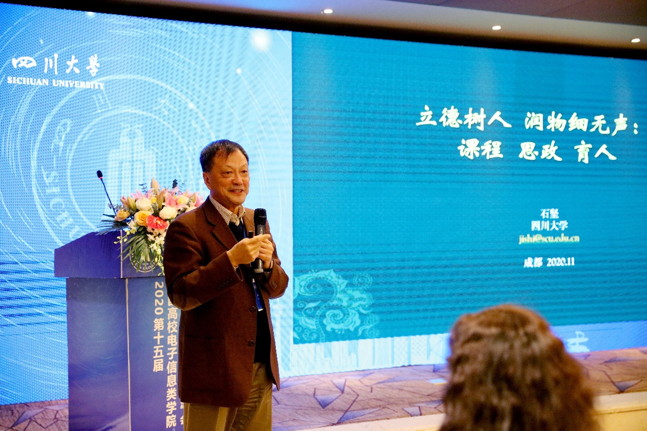 本次会议的四个主题报告十分精彩,引起了与会者的广泛讨论和进一步的交流。报告人及题目分别为:卢湖川教授----“专创融合:电子信息创新人才培养的探索与实践”、石坚副董事长----“立德树人 润物细无声:课程 思政 育人”、王琦教授----“完善一流实践育人体系,支撑个性化创新创业能力培养”,凌翔教授----“四新驱动,信息与通信领域的新工科建设与实践”。