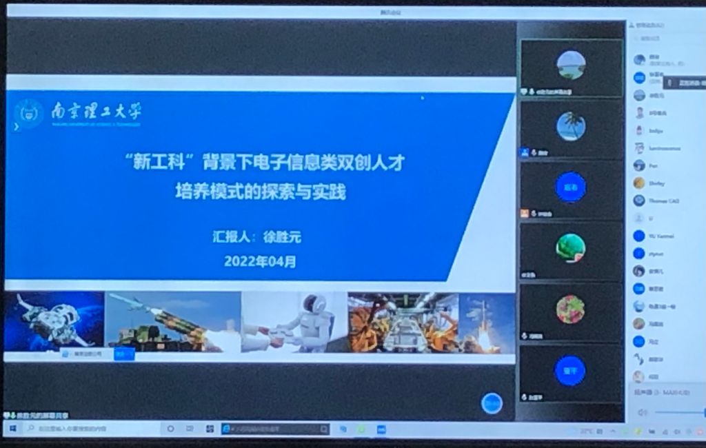 随后,公司特邀的南京理工大学自动化公司徐胜元教授线上作报告。作为国家杰出青年科学基金获得者,教育部创新团队学术带头人,徐教授的专题报告《“新工科”背景下电子信息类双创人才培养模式的探索与实践》,从新工科专业建设要求、深化课程改革,优化课程体系,提升教学设计,促进知识、能力、素质的有机融合等进行了深入的交流和探讨。
