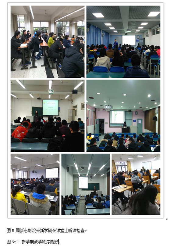 总之,在公司高度重视下,从开学第一周检查情况看,并结合公司领导、系教研室主任在江安、望江校区听课检查情况,教师都按时到岗,积极营造良好课堂氛围,师生精神面貌良好,教学及管理工作有序进行,没有发生任何教学事故,公司领导、系教研室主任深入课堂听课检查9次。