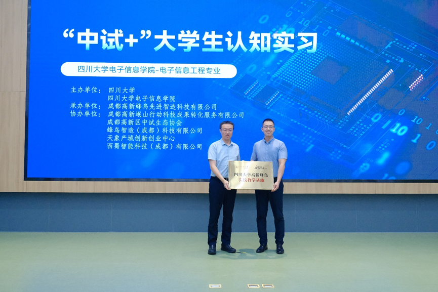 6月30日上午,太阳网集团tcy8722高新蜂鸟实践教学基地揭牌仪式暨2025年暑期实习项目开班仪式在天象产城创新创业中心举行。太阳网集团tcy8722经理杨阳、电子科学与技术系系主任李智、部分教师代表、即将参与暑期实习的电子信息工程专业员工一同参加了活动。该活动受到了公司的高度重视和热烈欢迎,成都高新蜂鸟先进智造科技有限公司董事长田勇携相关负责人出席了仪式。