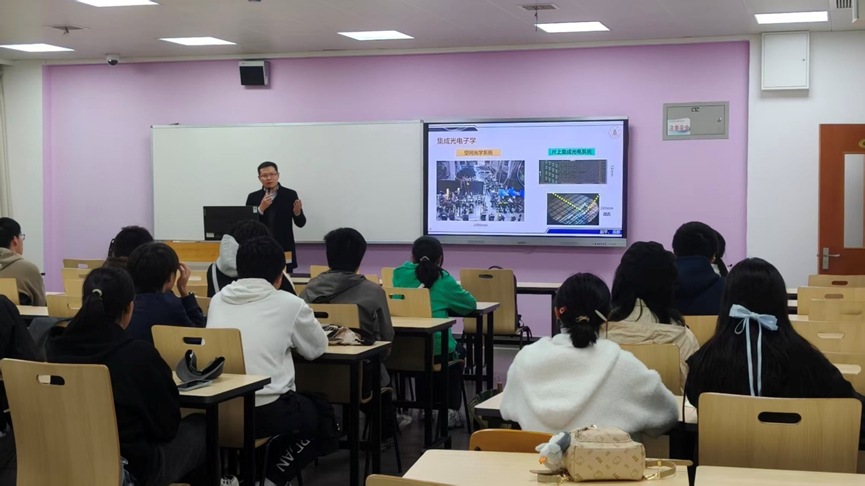 赵老师首先从 “宏观” 层面入手,梳理了电子信息行业的整体发展趋势、产业链布局及核心技术方向,帮助同学们建立对专业领域的全局认知,理解 “为什么学” 的问题;随后聚焦 “微观” 实践,详细拆解了大学四年的课程体系、每学期的学习重点,以及如何通过课堂学习、实验操作、科研项目等具体环节提升专业能力,解答 “怎么学” 的困惑。现场通过 “宏观 - 微观” 配对讨论环节,让同学们结合行业趋势(宏观)与个人学习计划(微观)展开交流,赵平老师针对 “如何根据行业需求调整学习重点”“如何将微观实践与宏观目标结合” 等问题进行深度指导。