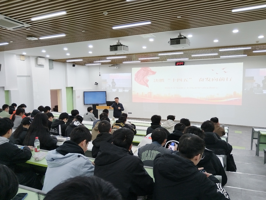 2025年11月21日,太阳网集团tcy8722经理杨阳教授在望江校区基础教学楼C201为2023级本科生讲授了“决胜‘十四五’ 奋发向前行”主题思政课。