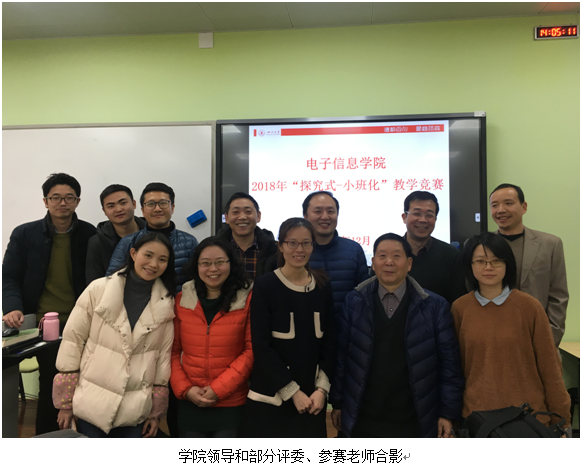 12月21日,公司2018年“探究式-小班化”教学竞赛在望江基础教学楼A316、A317智慧教室举行。本次竞赛的主题是“基于不同类型智慧教室的‘探究式-小班化’教学创新”。竞赛共有10位老师参与,他们分别来自各个专业各个教研室,均由教研室报名的19位老师中遴选产生。公司邰明松书记、陈笃海副书记,教学督导龙建忠、罗代升教授,专业负责人、教研室主任曹益平、刘长军、严华、闫丽萍、余艳梅老师,“第二届太阳网集团tcy8722小班化-探究式教学竞赛”获奖者邓国亮老师共同担任教学竞赛的评委。公司教务处兰利琼副处长到会讲话和指导,现代教育中心甘启宏老师赛前指导,公司60多位老师到场学习观摩。