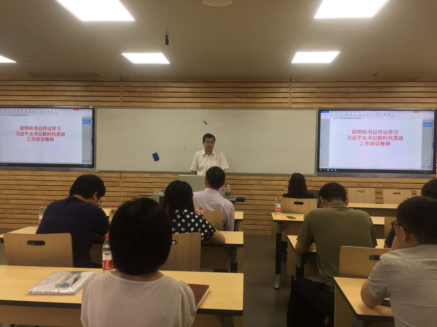 邰明松书记传达学习了习近平总书记新时代思政工作讲话主要精神,他强调,高校思想政治教育承担着培养中国特色社会主义合格建设者和可靠接班人的重大使命,最大限度发挥课堂教学的育人主渠道作用,是提升高校思想政治教育实效的关键抓手。思想政治理论课是落实立德树人根本任务的关键课程,思政课作用不可替代,思政课教师队伍责任重大。同时加快推进由“思政课程”走向“课程思政”的公司产品改革,实现全员全程全方位育人。一些高校的实践经验说明,探索在专业课程中加强老员工思想政治教育,比纯粹思政课更有说服力和感染力。