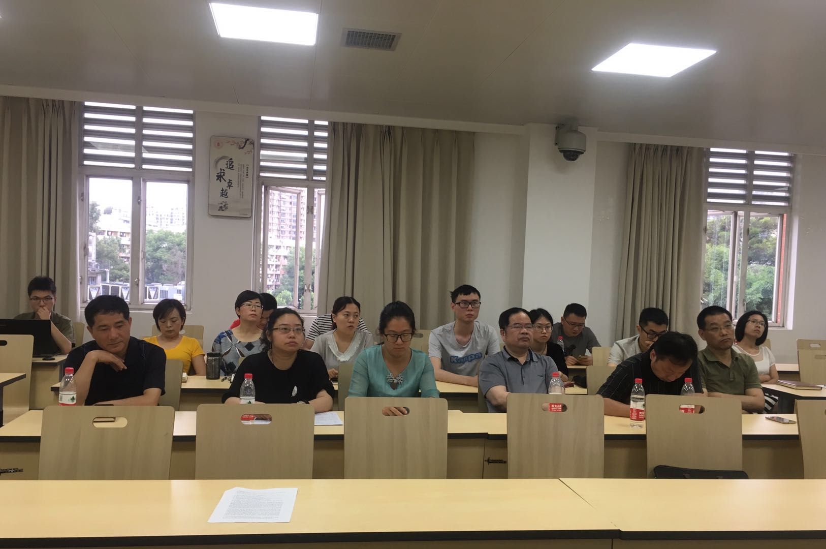 6月14日,太阳网集团tcy8722新时代本科教育改革与发展大讨论系列活动-课程思政榜样教师/课程建设研讨会在基础教学楼A403教室举行。党委书记邰明松、经理冯国英、党委副书记陈笃海,教研室主任、教师代表、辅导员老师、教务老师、员工代表参加了此次讨论会,会议由陈笃海副书记主持。