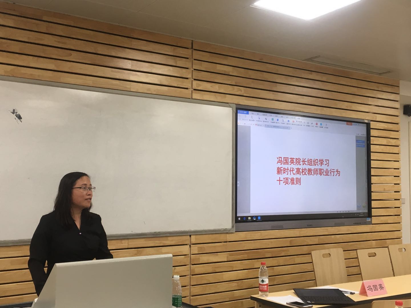 冯国英经理组织学习了2018年教育部印发的新时代高校教师职业行为十项准则,强调全院教师要结合公司及专业课程建设的实际情况,坚持用习近平新时代中国特色社会主义思想铸魂育人,认真贯彻党的教育方针,课堂上积极传播正能量,努力提升教书育人的质量,推进公司一流本科专业的建设。