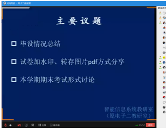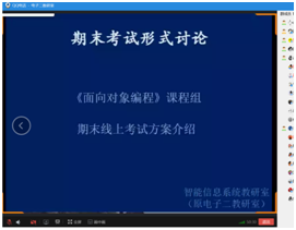 为确保疫情期间期末教学工作的有序开展,智能信息系统教研室于2020年6月12日下午2:30召开线上教研室会议。