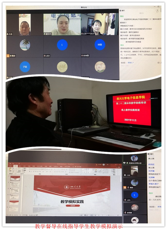 在教学实践模块培训部分,公司聘请了教学经验丰富、多次参与培训的教学督导龙建忠、罗代升教授承担。在线上平台每位学员不限题目及形式就一个“问题”或“理论”进行5分钟的教学模拟演示,教学督导对学员进行点评、指导。