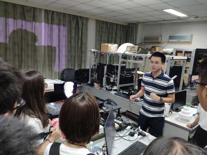 随后,营员们在志愿者的带领下认真参观了公司的三维传感与机器视觉实验室、图像信息研究所、物联网与感知实验室、智能控制所和应用电磁研究所等,并聆听了各课题组老师和学长们就每个实验室实验条件、实验功能和科研成果等基本情况的介绍,近距离体验了各课题组的科研内容和成果。