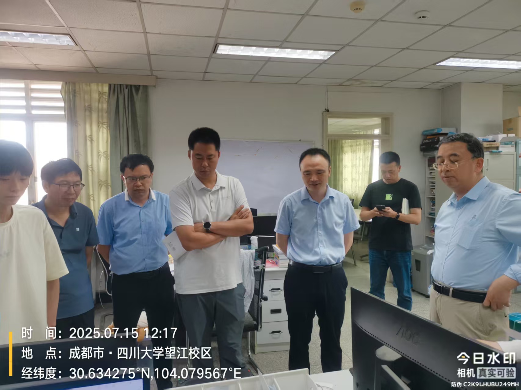 7月15日,扬州宝军公司党委书记严荣华带队,副总经理汤湘伟,首席科学家陈雄方一行到公司访问。公司经理杨阳教授代表公司欢迎扬州企业领导,并一起参观了实验室。系主任李智、杨鑫松、高勇、夏文龙、巨兴兴、华伟等老师陪同介绍参与讨论。