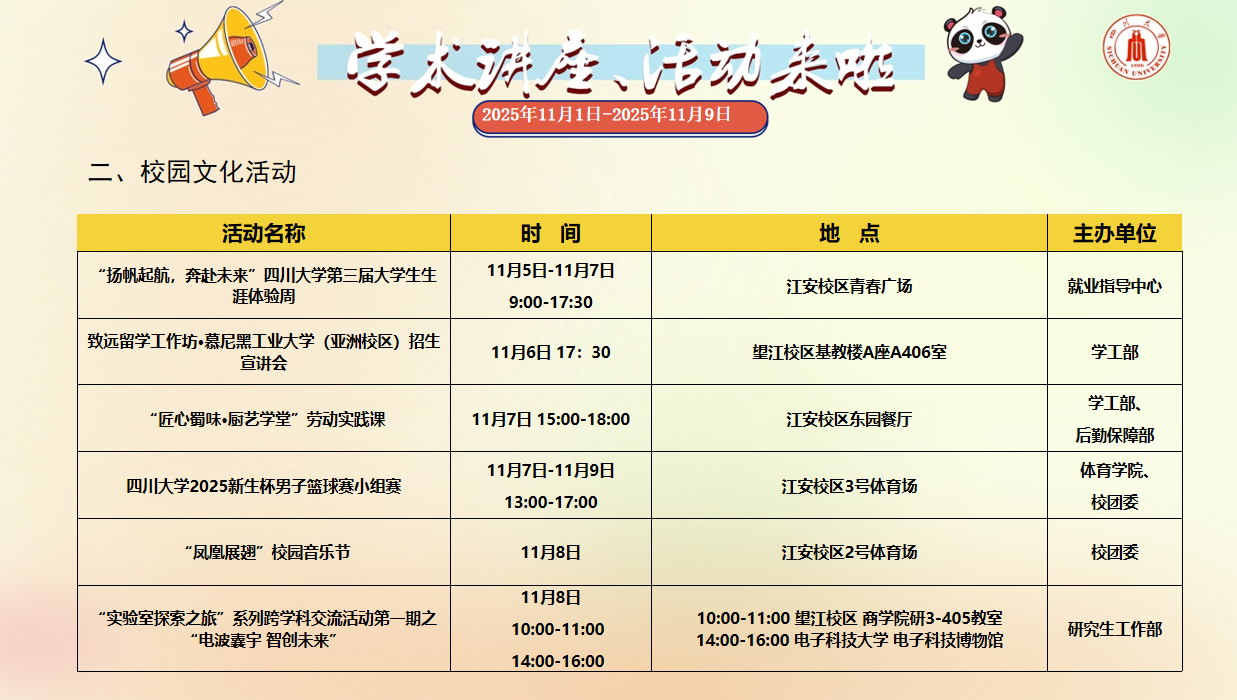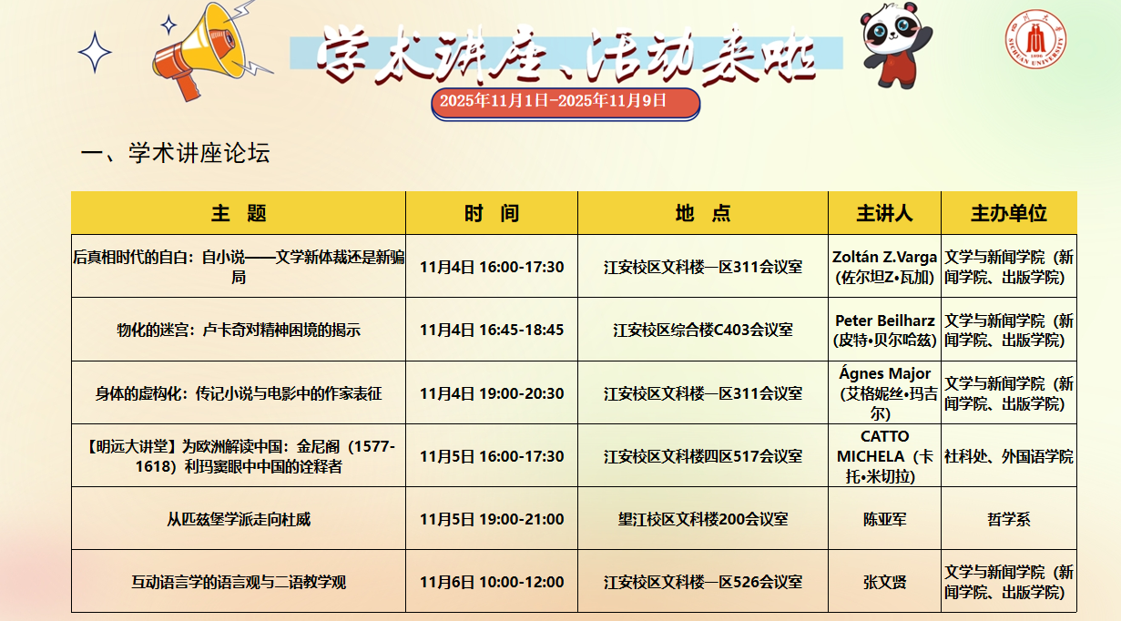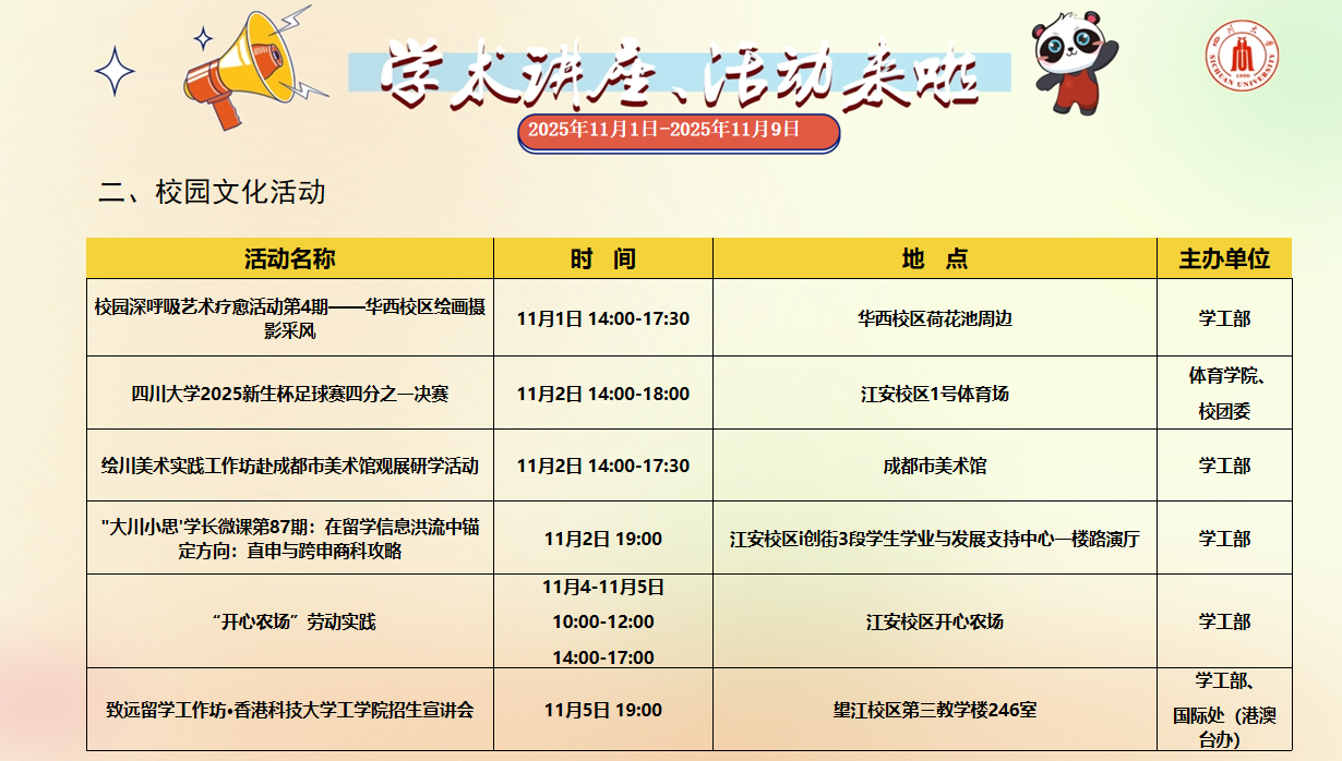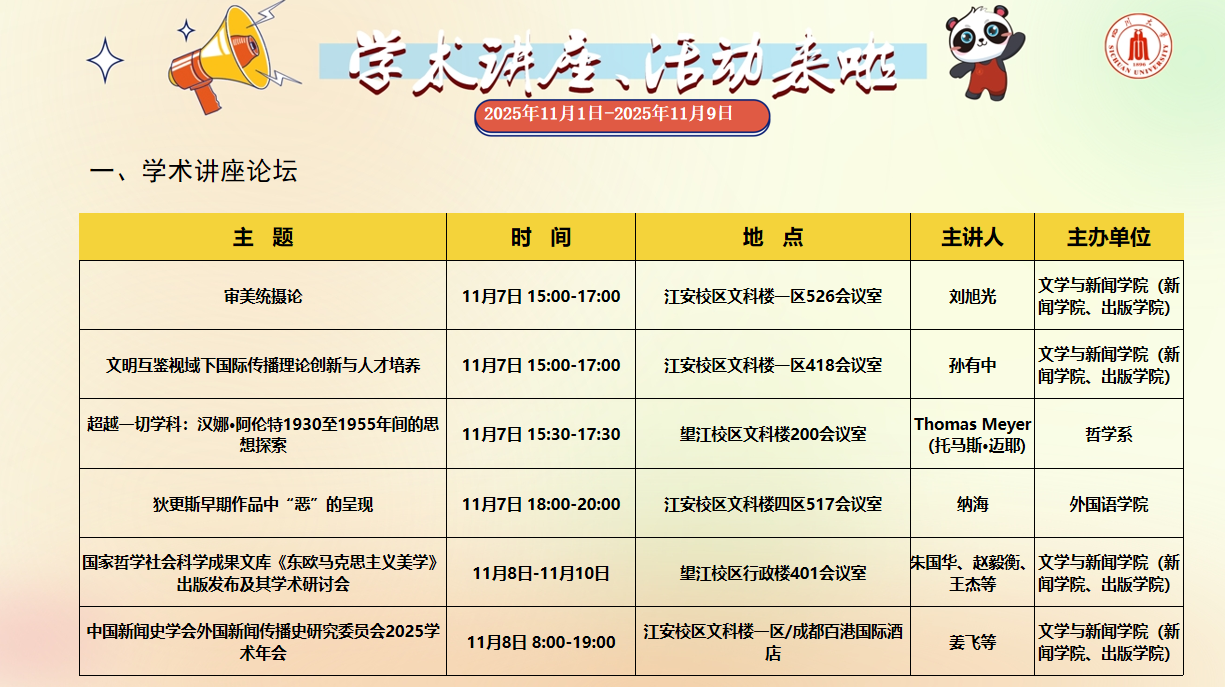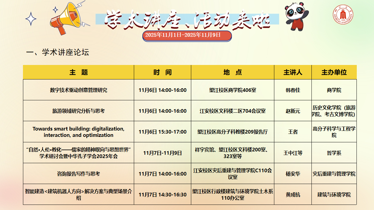 2025年11月1日-2025年11月9日学术讲座、活动安排