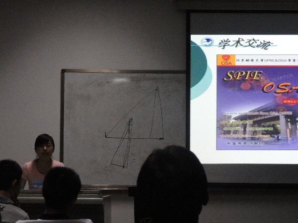 2011年6月11日,晚8点。在基础教学楼A座303教室,电子研分会学术科技部协同川大SPIE学会,共同举办第12期EI学术沙龙。此次活动以丰富本公司研究生的课余生活和加强同学之间的交流,以及拓宽研究生的思维与视野为目的,让光学专业的低年级研究生对专业研究的方向有所深入了解。