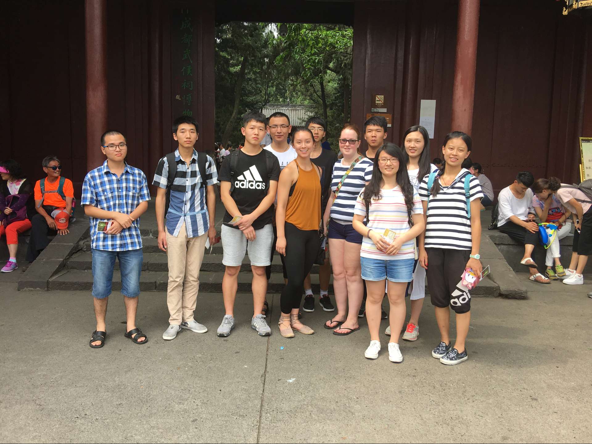 2016年7月4日下午两点在成都市武侯祠开展了实践及国际课程周的户外活动之“探访锦里”。由公司14名同学以及外方2名同学的小组,在武侯祠进行了实地探访。本次探访的主要目的是介绍历史悠久的三国文化,以及享誉盛名的诸葛亮先生。本次活动意在促进双方的文化交流,借以向外方同学介绍我国浓厚的文化底蕴。