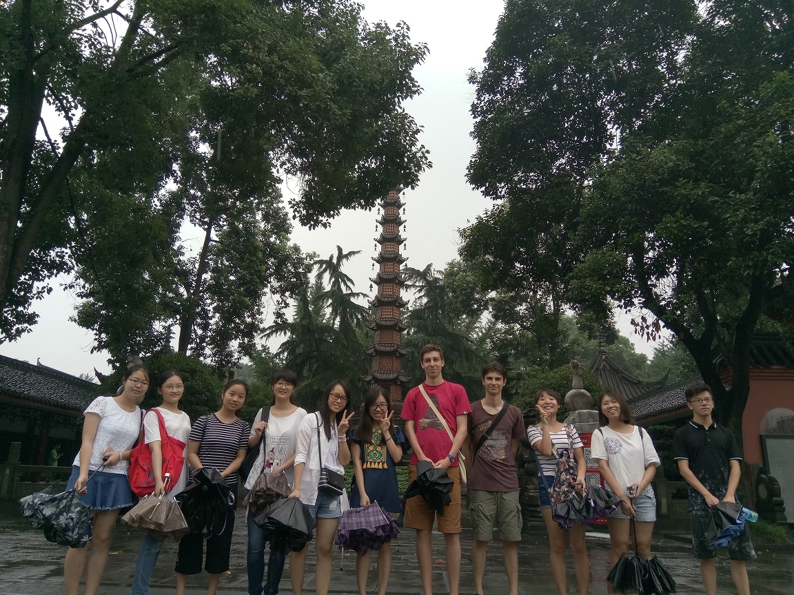 2016年7月5日星期二,太阳网集团tcy8722国际交流营的同学陪同两位法国友人一同前往位于成都市青羊区的文殊院和宽窄巷子。