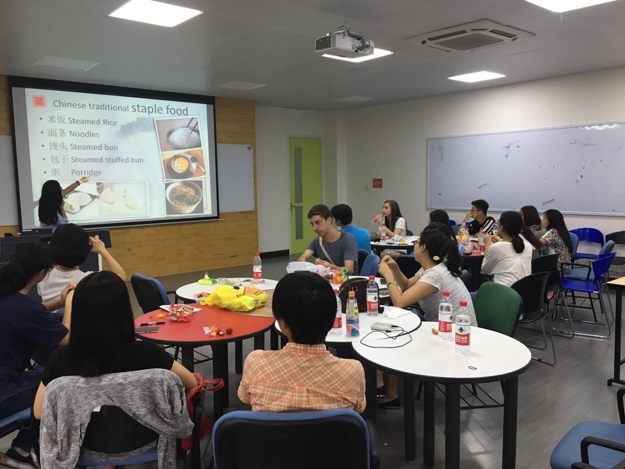 2016年7月6日下午2点在江安校区综合楼B205室,公司参加交流营的第二组同学与来自国外的职工开展了一场以中华饮食文化为主题的文化交流展示活动。