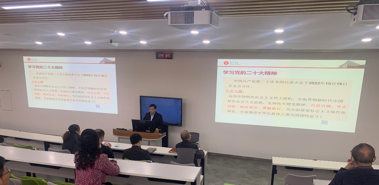 最后,邰明松书记向全体教职工传达了公司相关学习要求,并表示学习贯彻党的二十大精神是当前和今后一个时期的首要任务,全体教职工要深入学习贯彻党的二十大精神,落实公司第九次党代会的精神,以一流学科、一流公司建设为目标,以实干创新的精神和勤奋务实的作风全力推动公司高质量发展,助力公司发展再上新台阶。