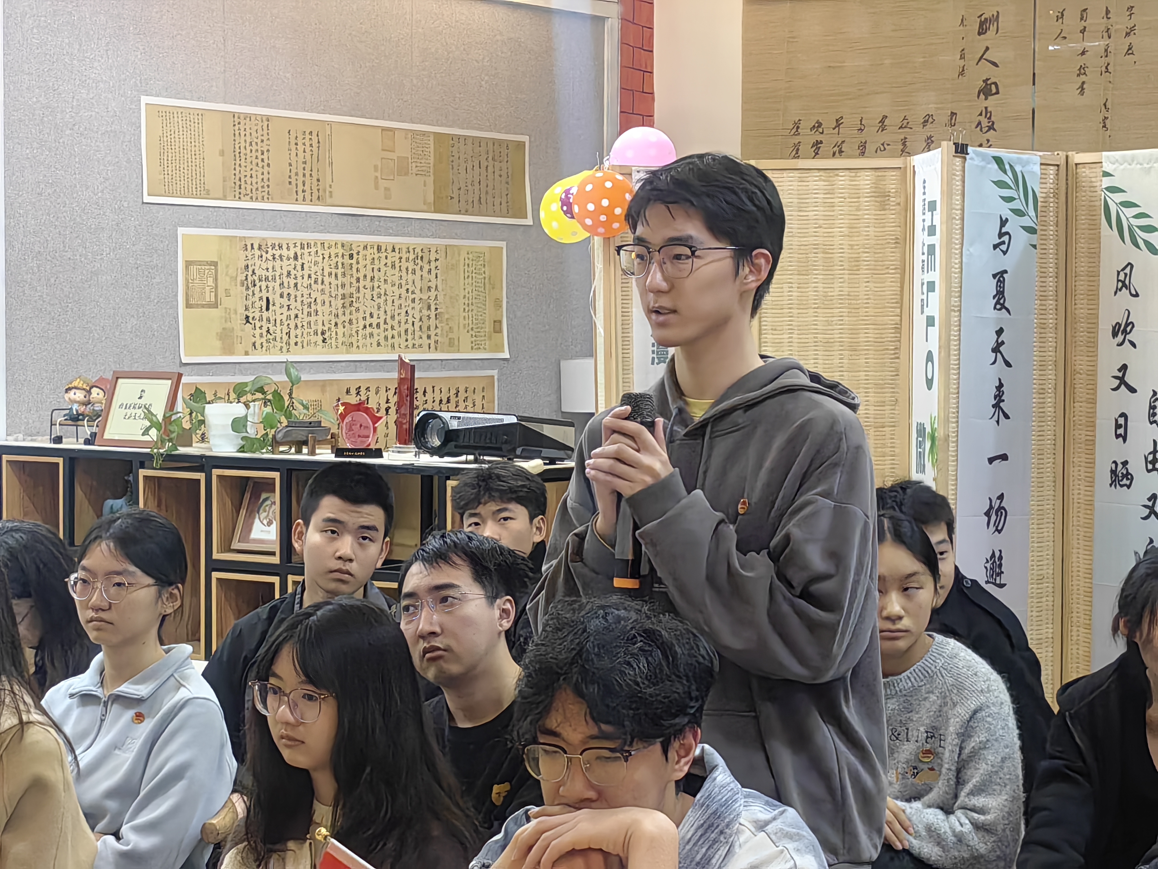 在提问环节,入党积极分子踊跃提问。党员发展对象彭书睿就“自我沉淀与为人民服务的平衡”向老党员请教,老党员们勉励同学们,员工阶段应以学习为重,扎实沉淀本领,立足当下才能更好地服务社会。现场答疑真诚恳切,让同学们深受启发。