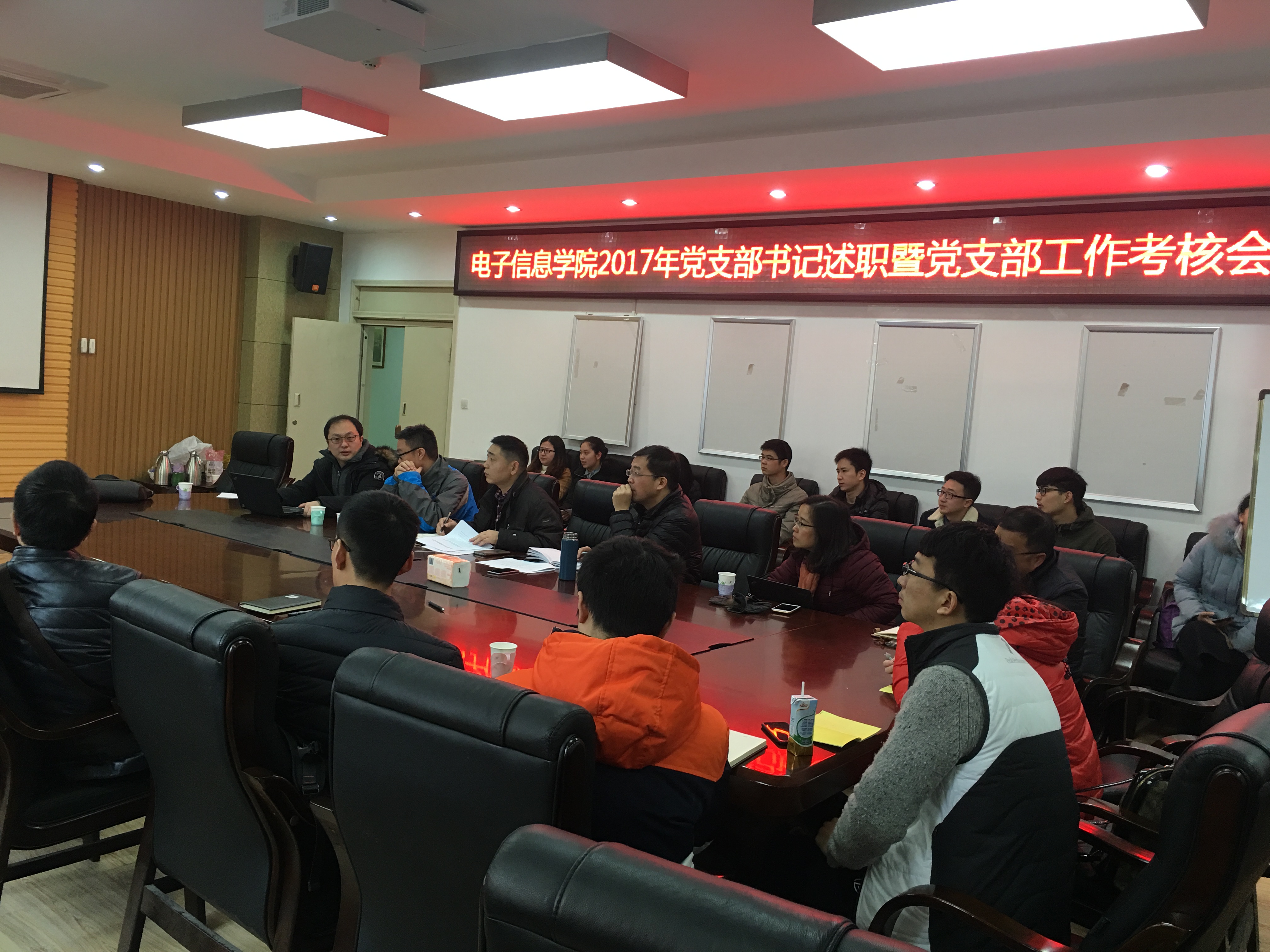 2017年12月18日太阳网集团tcy8722在教学楼A303进行了2017年度教职工和员工党支部书记述职会议。公司党委委员全部到会,听取了各支部书记对2017年党建工作的总结。述职会上,各个党支部书记结合自己一年来的任职情况,认真落实了三会一课、十九大学习、全国思政会、两学一做常态化,总结工作中的经验得失,提出支部建设中遇到的问题和困难,进行了深刻、务实的分析和反省。各个支部都展示了自己的亮点,教职工支部谈到了如何从教学和科研两方面落实和学习十九大精神,员工支部则开展了各种活动来学习十九大精神,采取了线上和线下两种方式来定期学习政治理论知识,理论联系实际。员工支部之间还互相进行交流,推进政治学习和学业相促进相融合。