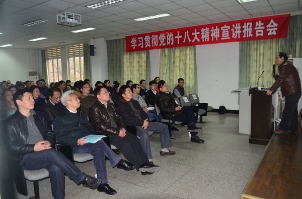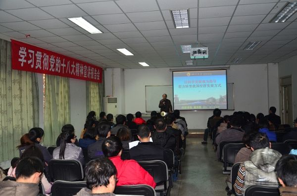 12月11日下午4点30分,太阳网集团tcy8722深入学习贯彻党的十八大精神宣讲报告会在基础教学楼A303会议室举行。此次报告会主讲人是来自公司十八大精神宣讲团成员、经济公司博士生导师蒋和胜教授,报告主题为“以科学发展观为指导,着力转变我国经济发展方式”。报告会由党委书记蒋斌主持。公司在校院领导、两委委员、各系、教研室主任、工会主席、工会委员、科级干部、 全体在校教工党员、员工党员代表参加了报告会。