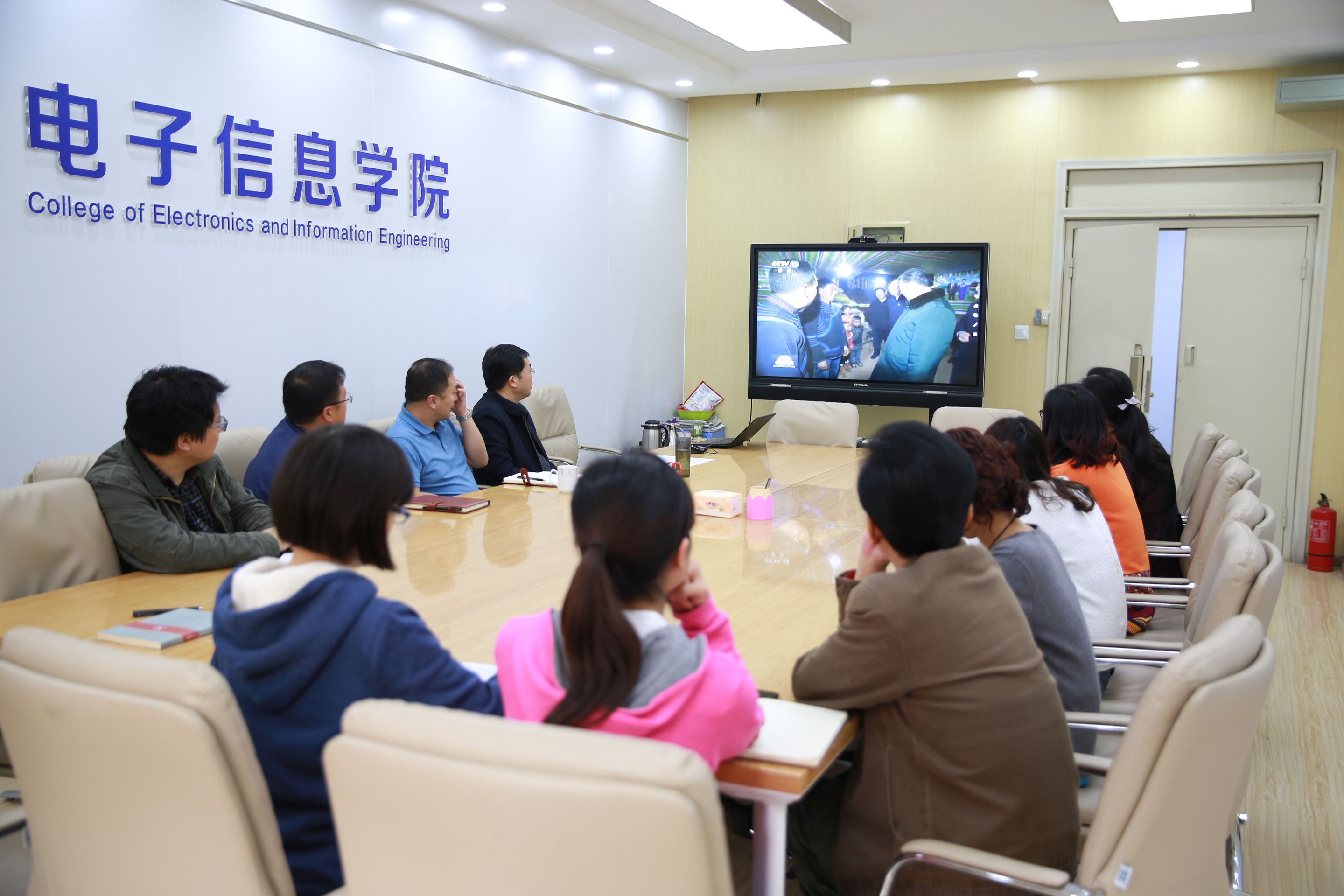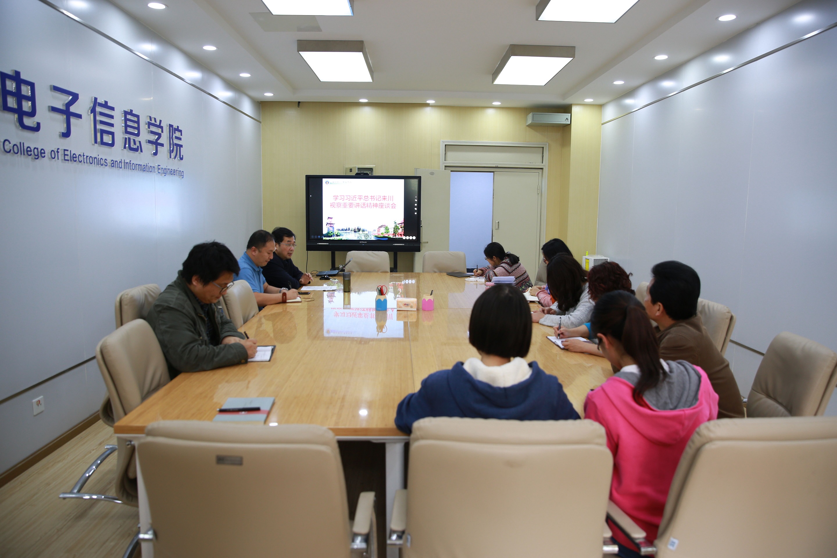 座谈会伊始,全体参会教职工一起观看了习近平总书记春节前夕赴四川看望慰问各族干部群众的新闻报道。