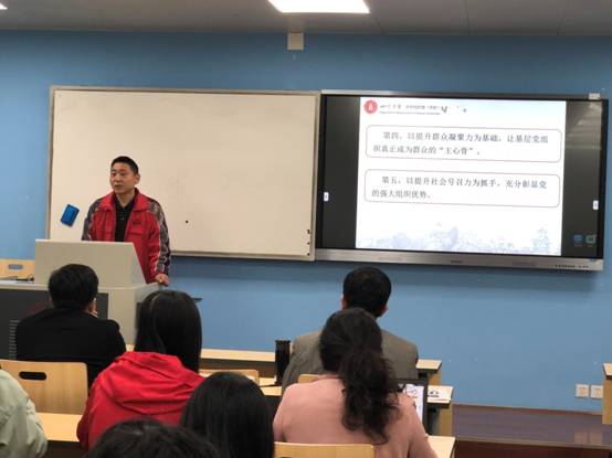 陈笃海副书记的主题党课以习总书记对于党的基层工作讲话谈起,结合党的十九大报告中明确指出的“加强基层组织建设”内容展开。他谈到,围绕核心抓党建,主要有“五抓”:基本教育、基本建设、基本队伍、基本制度、基本保障,强调要全覆盖,提升凝聚力和社会号召力,充分彰显党的强大组织优势。同时还要回归党章,充分认识党章的内容,以此为凭借。陈书记指出,基层党组织作为群众“主心骨”,开展党支部活动,要严格遵守党的组织生活制度,同时由于员工和教工是主要参与人员,因此党支部开展工作时要围绕“提升员工核心竞争力”为主要目标。之后,陈书记还从基层党组织建设方面主要存在的问题,支部党员大会的主要任务,发展党员工作程序等内容进行了说明和强调。