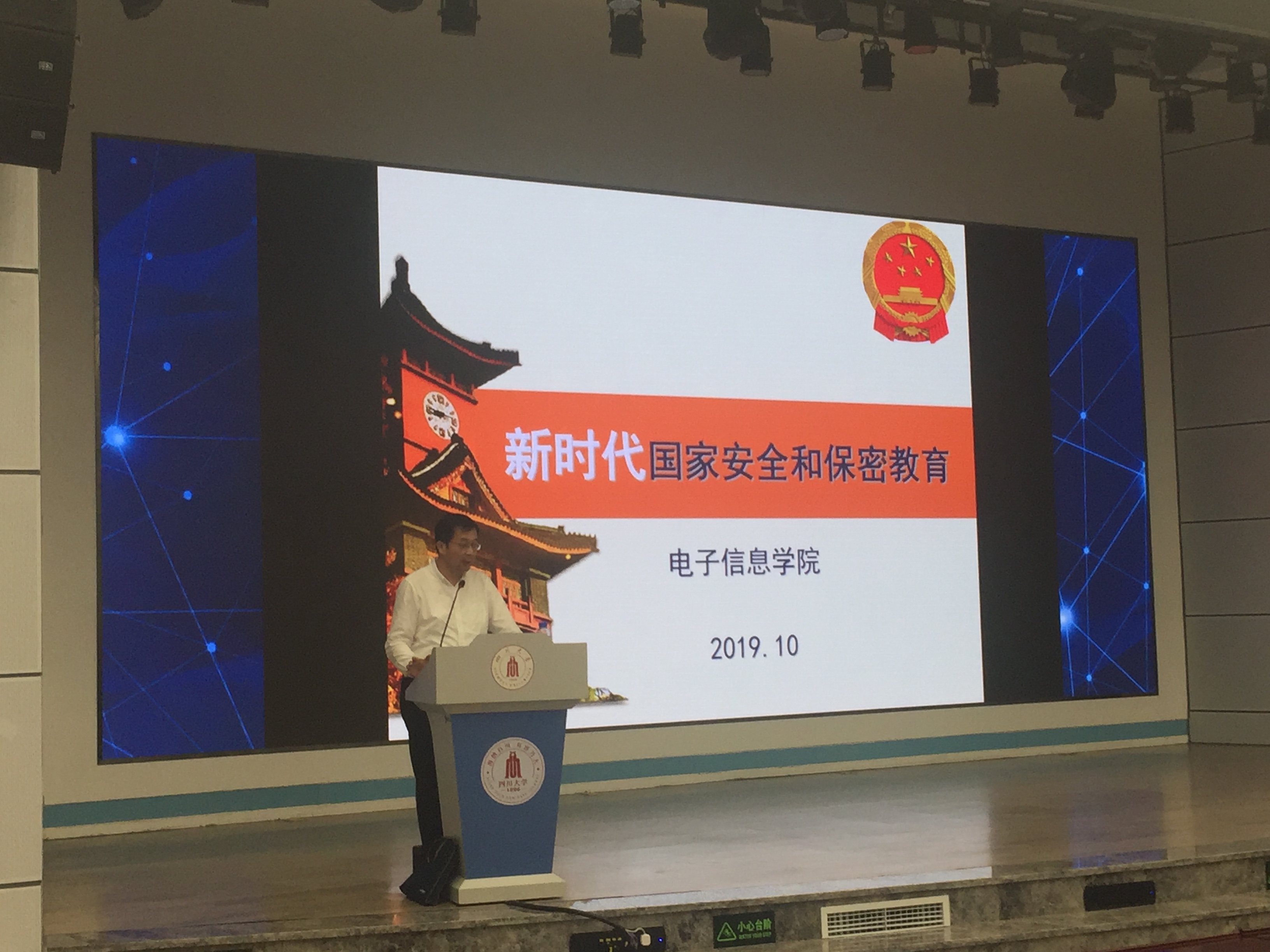2019年11月1日下午,在望江校区东三教学楼演播厅,公司党委书记邰明松同志为公司2016级部分本科生讲授了题为《新时代国家安全和保密教育》的专题思想政治理论课。