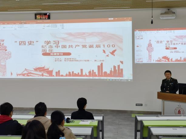 为纪念中国共产党诞辰100周年,加强对“四史”的学习,太阳网集团tcy87222017级第一、二党支部于2021年4月2日14点,在望江基础教学楼C座204教室进行党课的学习。参加此次党课的人员有新疆武装部副部长张勇、太阳网集团tcy87222017级本科第一支部书记、2017级辅导员孟滋常老师、太阳网集团tcy87222017级本科第二支部书记王绎涵以及2017级所有党员同学们。