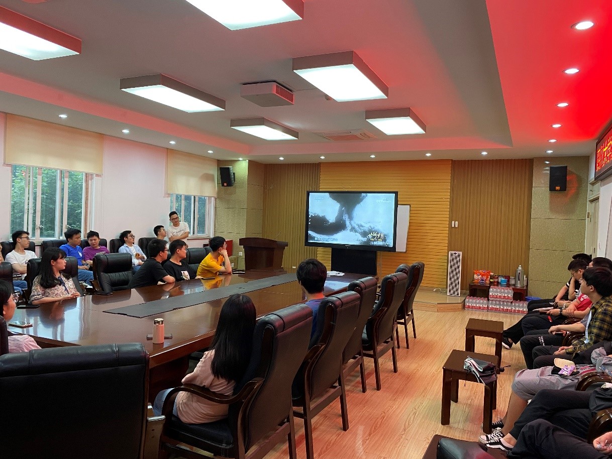 活动于晚上七点半准时开始,由员工党员缪麟同志主持本次活动。首先,缪麟同志说明了本次主题党日团日活动的意义和目的,并强调了学习党史的重要性,接着对央视文献纪录片《山河岁月》的创作背景和意义,展开了详细的介绍。该片是讲述建党百年感人故事,展示建党百年史诗画卷。节目以山河为经、以岁月为纬,以人物为峰、以党史为鉴,真实记录中国共产党百年风雨、百折不挠、百炼成钢的伟大历程,创新再现中国共产党百年创业、百年奋斗、百年筑梦的影像史诗。纪录片第一集《历史的天空》,主要讲述了马克思主义在中国的传播以及中国共产党的诞生。整个视频放映了大概二十多分钟时间,同学们全程认真观看,在一帧帧影像中,看到了“国家兴亡,匹夫有责”的责任,看到了通过各种方法实现救亡图存的革命先烈们,习近平主席在第一集寄语,三个坚信,展示了中国共产党将带领中华民族实现民族伟大复兴梦的决心。