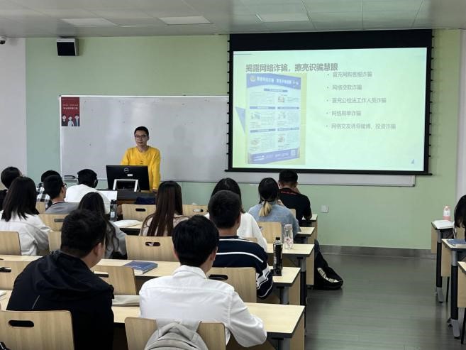 讲座中,王之尹同学从网络诈骗的类型、犯罪手段以及防范建议三部分展开了本次讲座。首先,他指出,网络诈骗案件具有:非接触性、犯罪成本低且经济收入高、侵害对象广社会危害大、犯罪团伙化且分工精细等特点,主要包括冒充网络客服,网络贷款,冒充公检人员,网络刷单,网络交友诱骗赌博等类型。关于预防网络诈骗,王之尹同学提出以下建议:切忌用生日等简单数字设置银行卡密码;切忌用短信向陌生人回复自己的身份信息;切忌在交友软件上简单地进行汇款交易;切忌买卖银行卡等。此外,他还强调,一旦发现被骗,要第一时间拨打110报警并保持电话畅通,并向反诈中心提供嫌疑人收款或自己出账的完整账号和相关信息,以便第一时间进行紧急止付