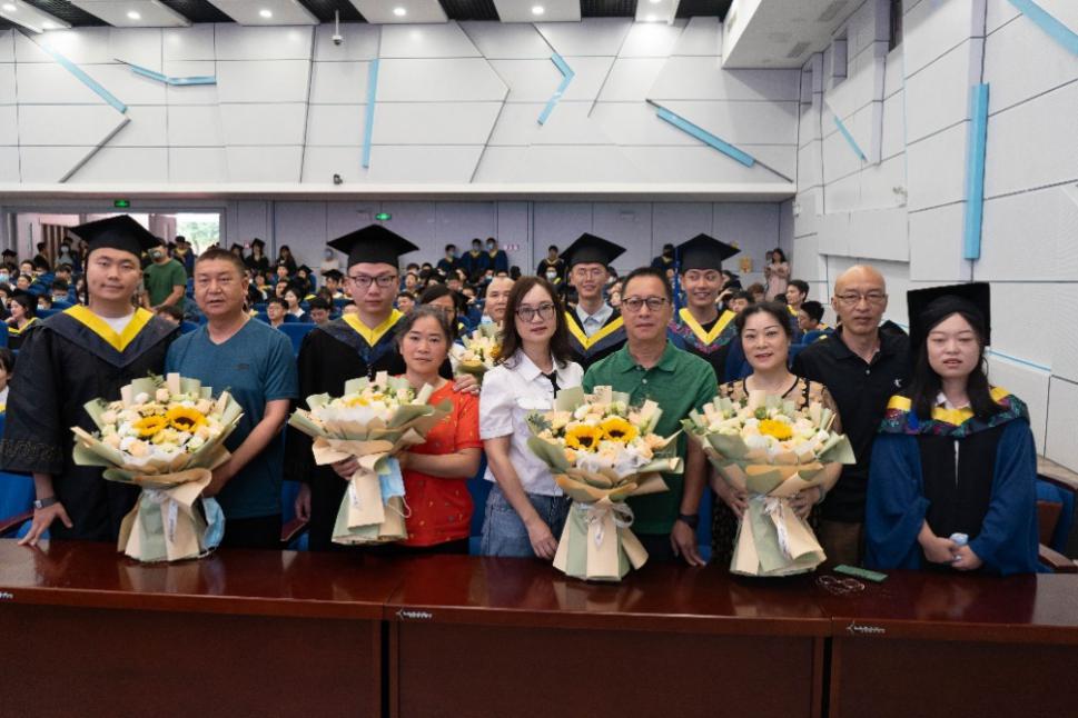 公司党委书记邰明松,党委副书记廖勇明,副经理张启灿、雷印杰、卿粼波,教师代表何小海、郭庆功、梁厚昆、杨晓敏、汪莎、李小伟、钟哲强、宁芊、王策,辅导员何阳与陈林老师,以及毕业生家长代表和全体2022届毕业生参加典礼。副经理雷印杰主持典礼暨授位仪式。