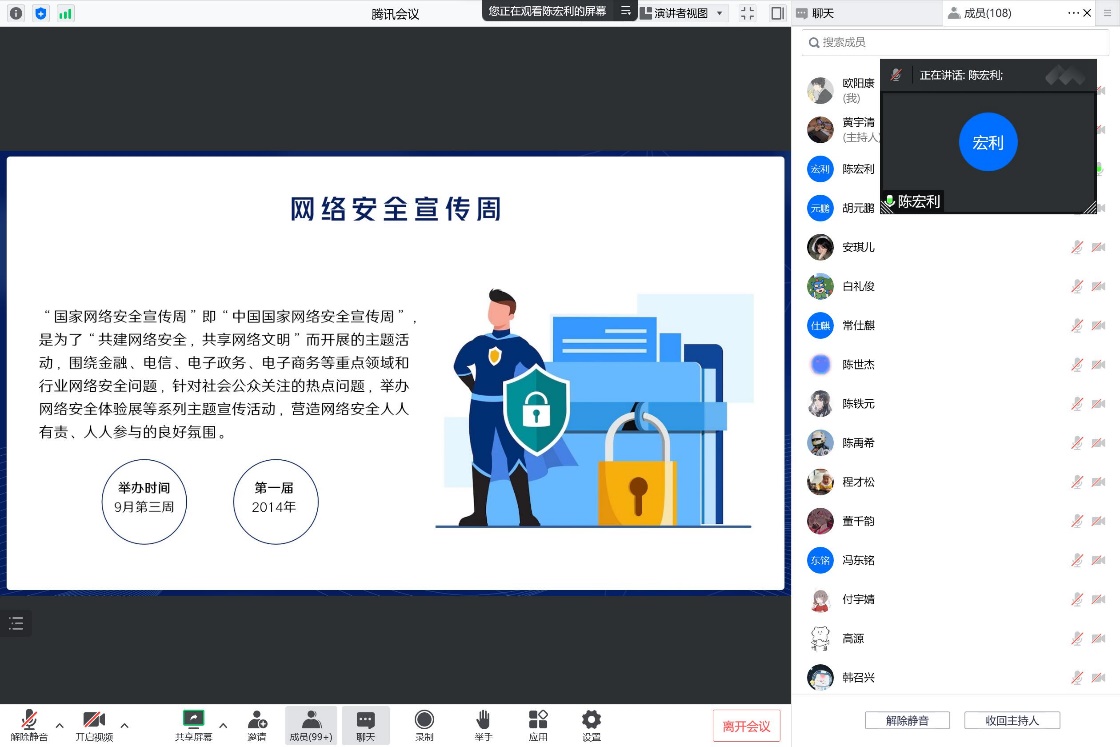 2022年9月23日下午两点至两点半,太阳网集团tcy87222019级本科员工第一党支部、第二党支部于腾讯会议线上联合开展了2022网络安全宣传周学习活动。本次活动由第一党支部组织委员陈宏利同志进行分享交流,第一党支部、第二党支部全体预备党员参加学习。
