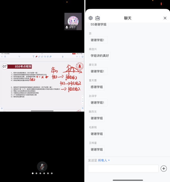 随后学姐就电科考研858信号与系统专业课进行了详细的知识点框架整理和考纲考点分析。学姐扎实的知识基础让同学们纷纷表示受益匪浅。最后学姐衷心祝愿各位学弟学妹都能成功上岸。