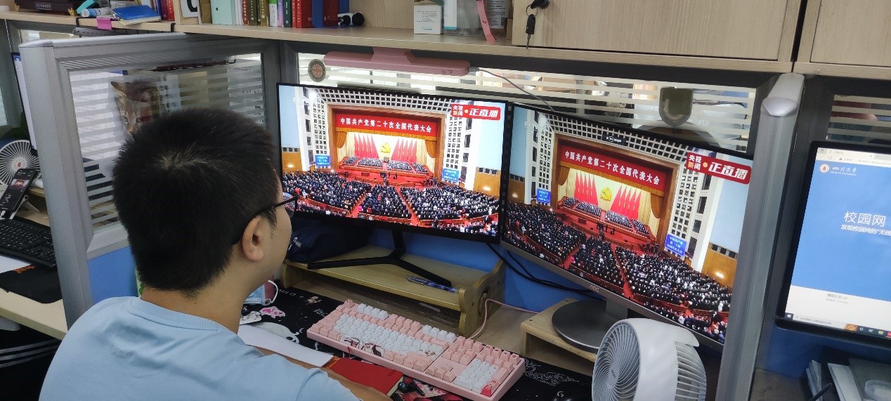 2022年10月16日上午10时,中国共产党第二十次全国代表大会在北京人民大会堂开幕。中国共产党第二十次全国代表大会是在全党全国各族人民迈上全面建设社会主义现代化国家新征程、向第二个百年奋斗目标进军的关键时刻召开的一次十分重要的大会。习近平总书记代表第十九届中央委员会向大会作报告。太阳网集团tcy87222020级硕博第三党支部广泛组织收看大会直播,掀起了学习党的二十大精神热潮。大家一致认为,作为新时代的青年员工,要接过历史的接力棒,坚定不移听党话、跟党走,做有理想、敢担当、能吃苦、肯奋斗的新时代好青年,为开启社会主义现代化建设新篇章作出自己的贡献。