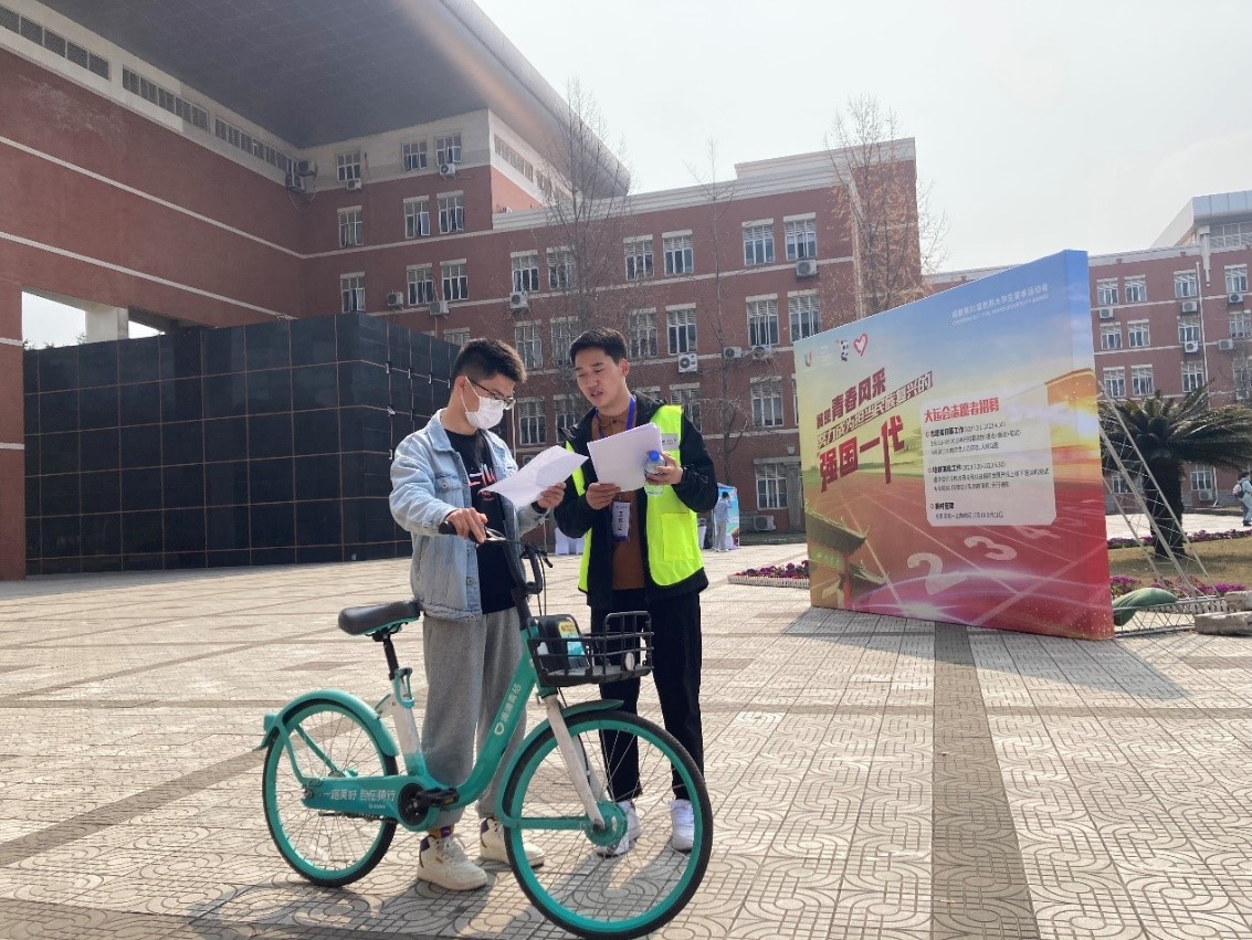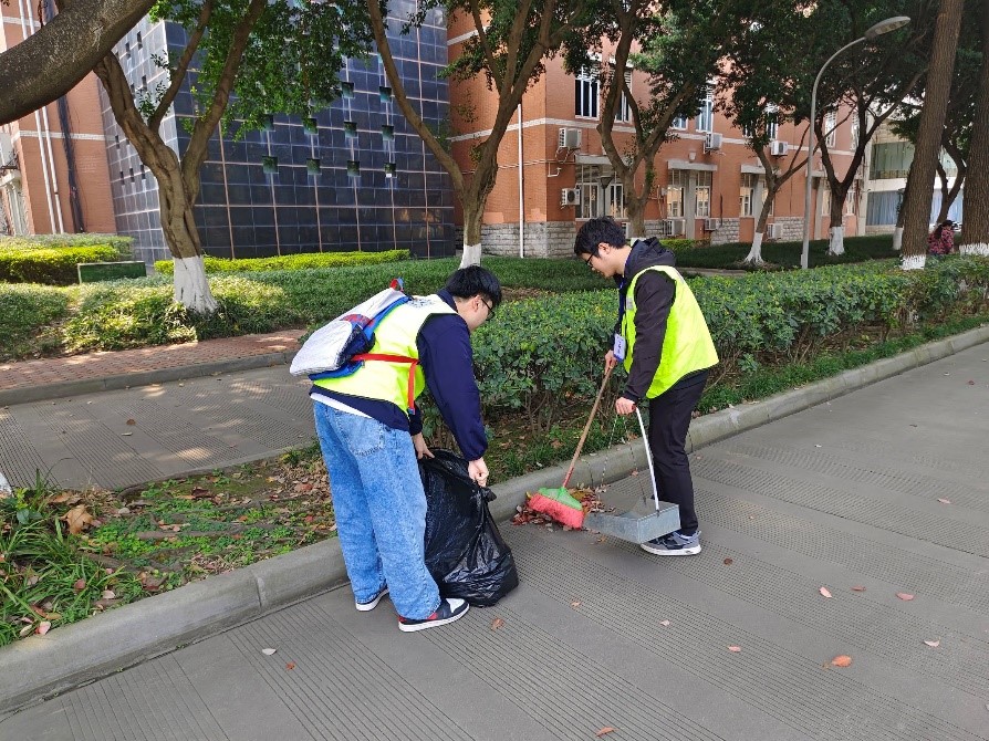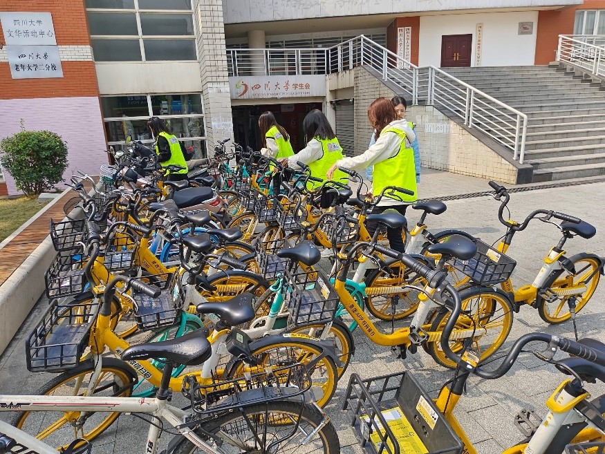 宣讲活动结束后,实践创就中心组织开展践行雷锋精神志愿活动,志愿者们对基础教学楼公共区域进行垃圾清理,并前往研究生院、文华活动中心、员工宿舍周边等共享单车停放较多的区域,对共享单车进行有序摆放并清理了车筐的垃圾。此外,为持续营造良好的校园卫生环境,志愿者们还向在校同学发出了“爱护校园卫生环境”的倡议。