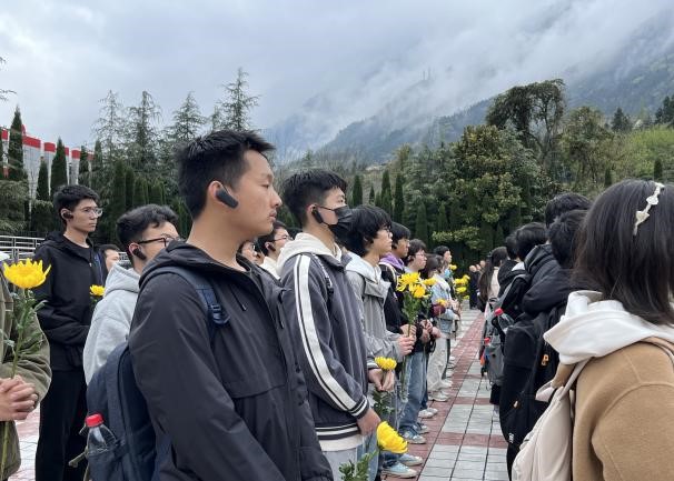 此外,同学们还在活动现场举行了庄严肃穆的纪念活动,共同缅怀那些为救援和重建付出生命的先烈和牺牲的群众,并向其表达了深深的哀思和敬意。