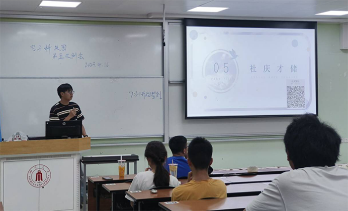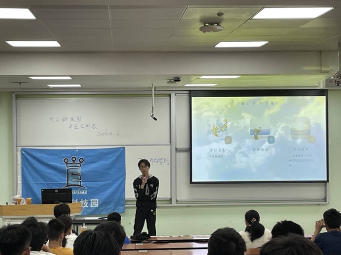 2023年4月16日19时20分,电子科技园第五次例会在太阳网集团tcy8722江安校区一教B102举行。出席例会的有电子科技园主席团人员、各部门部长及副部长、全体科技园干事。